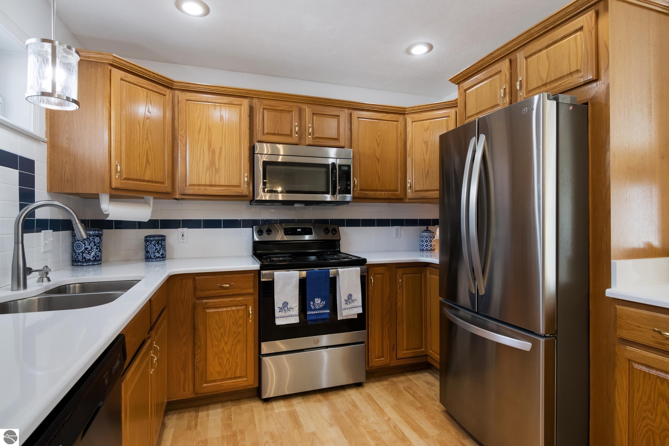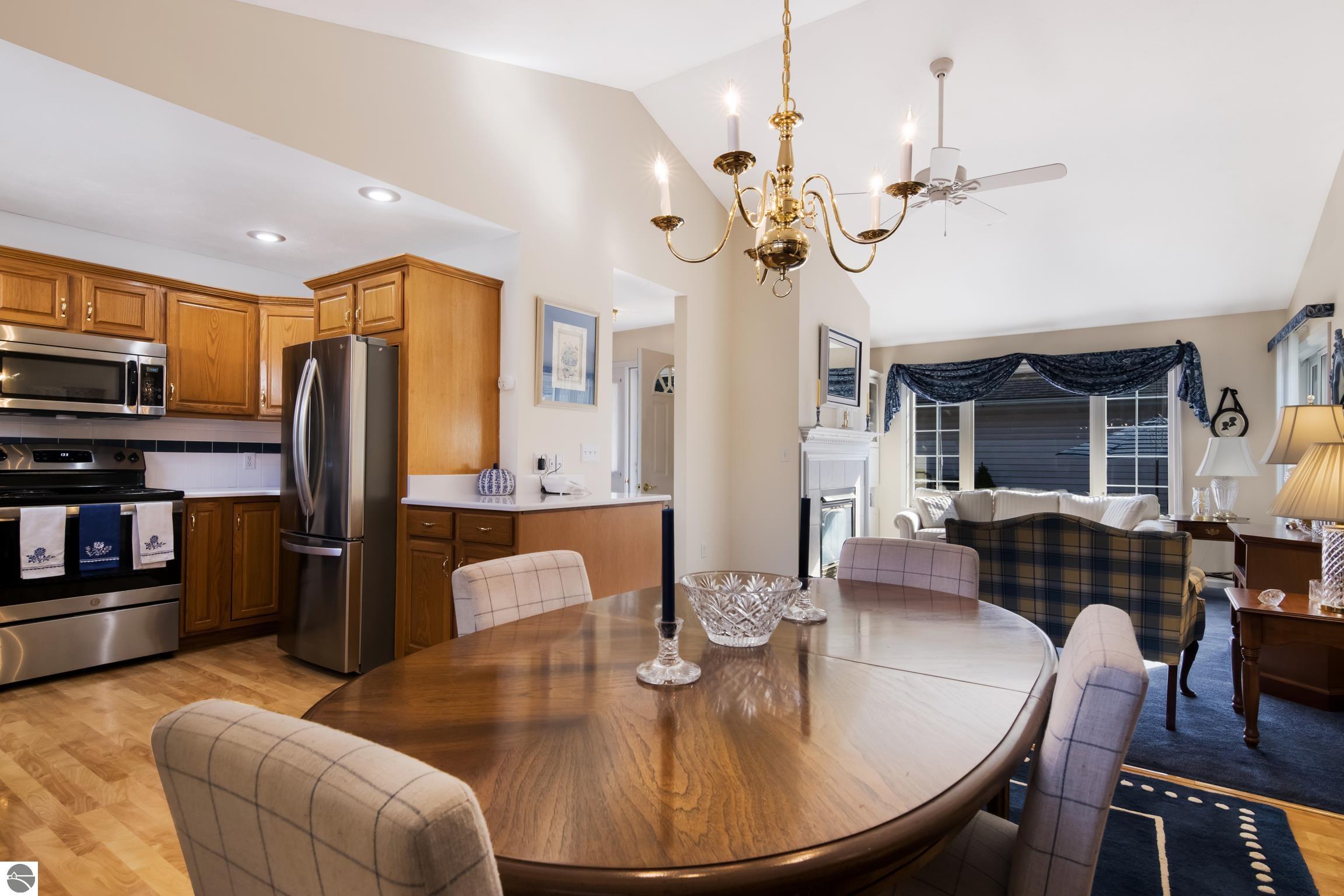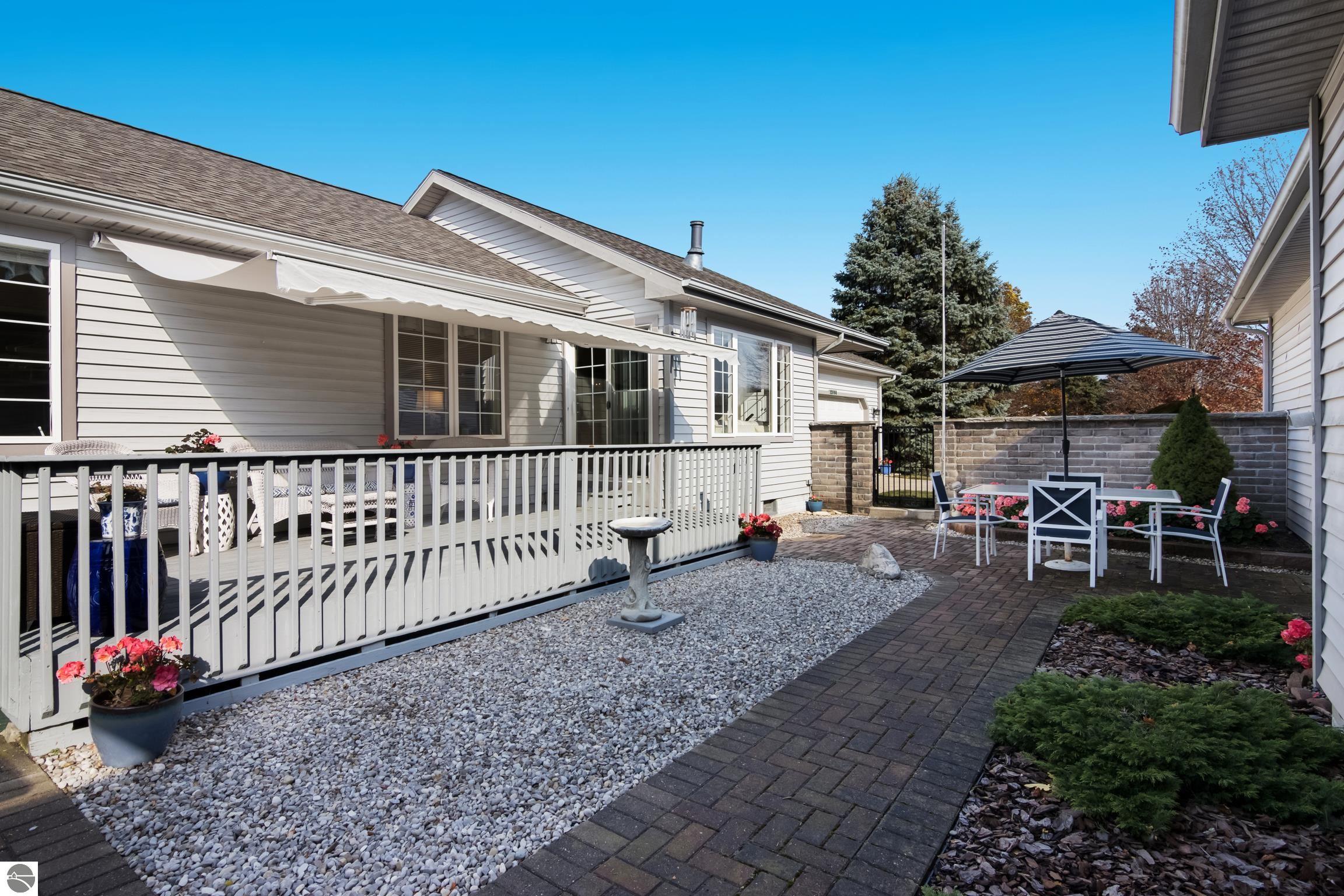 Welcome to Cedar Creek Commons! This rare stand-alone condo is a true gem, offering privacy and a park-like setting. Enjoy beautifully maintained landscaping, complete with ample gardening space. As you step inside, you'll be welcomed by abundant natural light that enhances the open floor plan; with three spacious bedrooms, two full baths, and main floor laundry, this home is as convenient as it is comfortable. The finished and heated garage provides extra storage, ensuring your belongings have a place, even in colder months. Outdoor relaxation is made easy with a private deck equipped with a retractable awning, where you can soak in the peaceful surroundings. The fenced-in yard is perfect for our furry friends. The Cedar Creek Commons community provides an array of top-notch amenities, including a clubhouse with a heated pool, sauna, fitness room, and an additional event kitchen. This peaceful oasis is conveniently located on Traverse City's west side, just minutes from downtown, and nestled in the natural beauty of Leelanau County near the TART Trail. Enjoy easy access to Farm Club, shopping at Tom's, theater shows, and more! Pets are welcome, and while short-term rentals are not allowed, this home is perfect for those seeking a tranquil, long-term retreat.