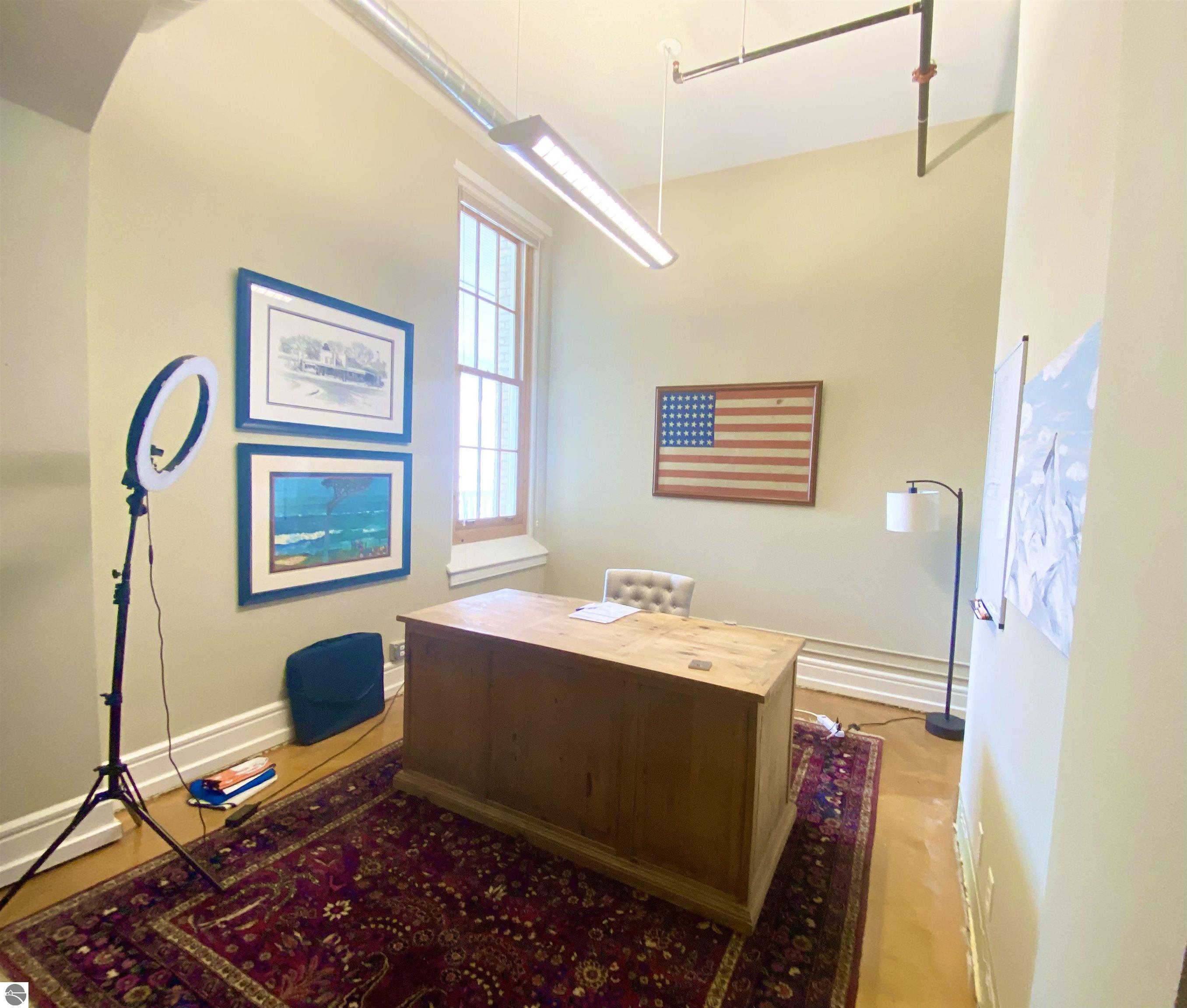 Location, location, location! Close to everything yet private and comfortable for achieving results. The office is located in the heart of the commons. The perfect combination of work and play. The Village at Grand Traverse Commons is a mixed-use development with shopping, dining, professional, and residential units in the redeveloped State Hospital. The property sits on 140 acres, with hiking trails and access to regional amenities. One-year lease required, $650 deposit. Lease includes all utilities and internet. The floors were recently redone! Occupancy is May 1, 2026.
